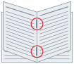 소책자를 생성하고 인쇄하는 경우 가운데에 스테이플 처리한 페이지를 출력할 수 있습니다. 페이지를 반으로 접을 경우 각 세트가 가운데에 중철되어 출력됩니다.