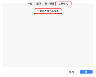 在顯示的對話框中,按一下 [工具程式] 標籤 → 按一下 [打開印表機工具程式]。