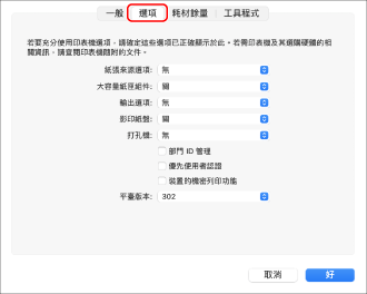 在顯示的對話框中,按一下 [選項與耗材]。