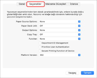 [Platform Sürümü]'nde, aygıtta yüklü olan platformun sürümünü seçin. [Platform Sürümü] doğru ayarlanmazsa bazı yazdırma ayarları kullanılamayabilir.
