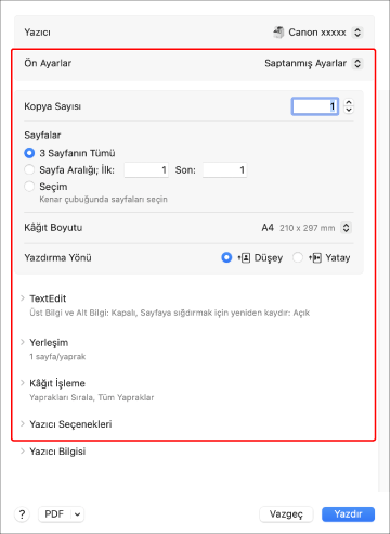 Yazdırma seçeneklerini yapılandırın.