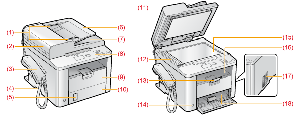 Udskrevet papir som f.eks. kopier, udskrifter og faxer kommer ud i udbakken.