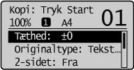 Når skærmbilledet til kopieringstilstand vises, kan du foretage dit valg ved hjælp af [