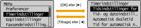 ] for at vælge punktet og fortsætte til næste skærmbillede.