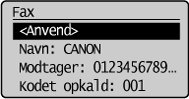 ] eller [ ] for at fremhæve <Fax>, og tryk derefter på [OK].![]() |