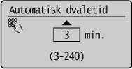 Indstillinger for automatisk dvaletid:Du kan indstille den automatiske dvaletimer til mellem <3> og <240> minutter i intervaller på ét minut. Standardindstillingen er <3> minutter.