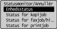 Tryk på [] eller [] for at fremhæve <Enhedsstatus>, og tryk derefter på [OK].