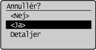] for at fremhæve <Ja>, når <Annullér?> vises, og tryk derefter på [OK].