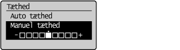 ] eller [ ] for at justere <Manuel tæthed>, når enten <Auto tæthed> eller <Manuel tæthed> er valgt. |
