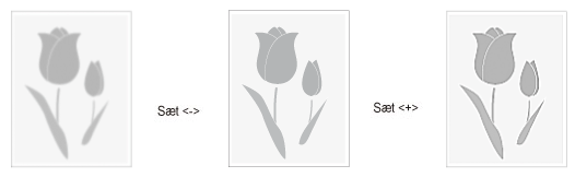 Hvis du tydeligt vil registrere tekst eller linjer, skal du justere denne indstilling til det relevante niveau på <+>-skalaen. Den er mest velegnet til kopiering af blåtryk og manuskripter med meget svage blyantstreger.