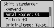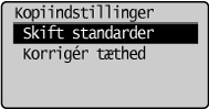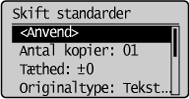 Standardværdierne for kopien er den funktion, der anvendes, når maskien er tændt, der trykkes på [