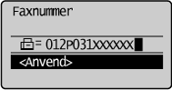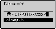 Indtast landekode, områdekode og fax/telefonnummer vha. taltasterne.