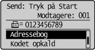 Når der skal angives destinationer fra adressebogen eller kodeopkald:![]() |