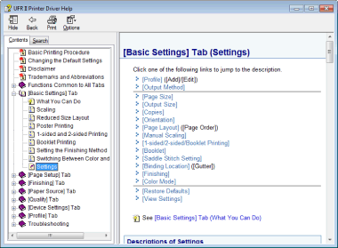 Klik på [Indhold]/[Søg] for at søge efter oplysninger.