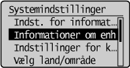 ] for at fremhæve <Informationer om enhedsindstillinger>, og tryk derefter på [OK].