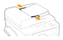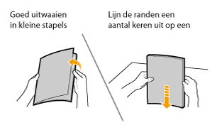 Duw de documentgeleiders stevig tegen de randen van het papier (er mag geen ruimte tussen de randen van het papier en de geleiders zitten).Als de documentgeleiders los of strak zitten, kan het papier verkeerd worden ingevoerd of kunnen er papierstoringen ontstaan.