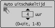 Als u de tijd op <0> instelt, wordt de machine automatisch uitgeschakeld.