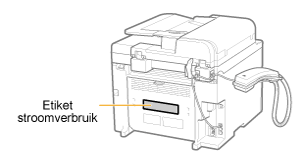 Het serienummer (een tekenreeks bestaande uit drie letters en een vijfcijferig nummer) vindt u op het etiket met stroomverbruik op de achterzijde van de machine.