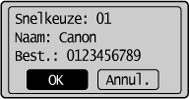 Het scherm wordt weergegeven als <Bevestiging Snelkeuze/Kiescode TX> op <Aan> is ingesteld en de bestemming wordt opgegeven met snelkeuzetoetsen of codes voor verkort kiezen.