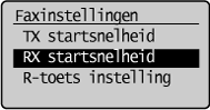 ] om <RX startsnelheid> te markeren en druk vervolgens op [OK].