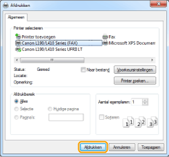 (Devices) (Apparaten) -> de printer die u gebruikt -> [Print] (Afdrukken). Als het bericht [The printer requires your attention. Go to the desktop to take care of it.] (Er is iets met de printer. Ga naar het bureaublad om dit op te lossen.) wordt weergegeven, gaat u naar het bureaublad en gaat u verder met stap 3. |