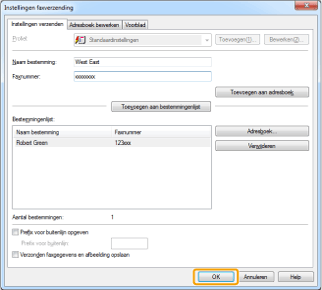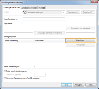 Raadpleeg "De online-Help weergeven (faxen vanaf pc)" voor informatie over het registreren van adressen en het gebruik van het adresboek.