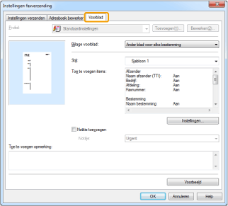 Raadpleeg "De online-Help weergeven (faxen vanaf pc)" voor meer informatie over het toevoegen van voorbladen.