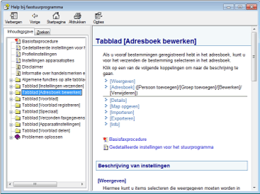 Klik op [Inhoud] / [Zoeken] om naar informatie te zoeken.