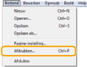 ] (Devices) (Apparaten) -> de printer die u gebruikt -> [Print] (Afdrukken). Als u op deze manier afdrukt, kunt u alleen bepaalde afdrukfuncties instellen. |