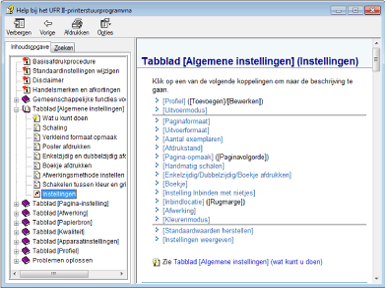 Klik op [Inhoud] / [Zoeken] om naar informatie te zoeken.