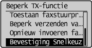 ] om <Bevestiging Snelkeuze/Kiescode TX> te markeren en druk vervolgens op [OK].