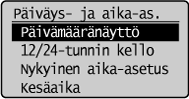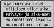 ]- tai [ ]-painikkeella ja paina sitten [OK]-painiketta.Päivämäärän muodot ovat seuraavat: VVVV KK/PP