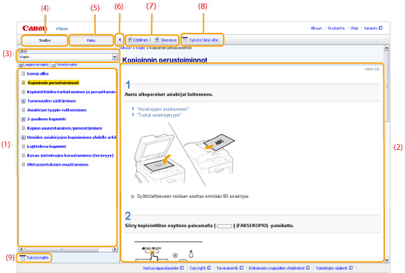 Tällä voit sulkea [Sisällys]- ja [Haku]-paneelit.