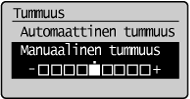 ]- tai [ ]-painiketta voit säätää <Manuaalinen tummuus> -asetusta, kun joko <Automaattinen tummuus> tai <Manuaalinen tummuus> on valittu. |