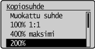 Voit suurentaa tai pienentää vakiokokoiset asiakirjat kopioitavaksi vakiokokoiselle paperille, esimerkiksi muuttaa Statement-koon Letter-kooksi (esiasetettu zoomaus). Voit myös asettaa kopiointisuhteen (25 - 400 %) 1 %:n välein.