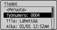 ] (Tilavalvonta/Peruuta) -painiketta sen jälkeen, kun olet tarkistanut valitun työn tiedot.