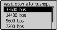 Valitse <Vastaanoton aloitusnopeus> painikkeella [