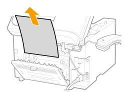 Vedä juuttunutta paperia varovasti alaspäin kiinnitysyksikön (A) ja telan (B) välistä, kunnes paperin etureuna tulee ulos laitteesta.