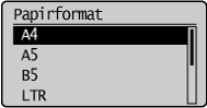 Hvis innstillingen er forskjellig fra formatet på papiret som er lagt inn:Det vises en feilmelding, eller maskinen utfører ikke jobben som forventet.