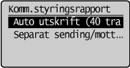 ] eller [ ] for å utheve <Av> eller <På>, og trykk deretter på [OK].<Av>: Skriver ut sende- og mottaksrapporter sammen.