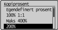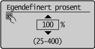 Trykk på [  ] eller [  ] for å utheve <Egendefinert prosent>, og trykk deretter på [OK].