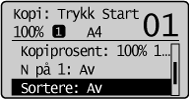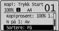 Hvis du for eksempel kopierer tre kopier av et 3-sidig dokument, grupperes og ordnes utskrifter av en ferdig jobb i denne siderekkefølgen: "1, 1, 1", "2, 2, 2", "3, 3, 3".