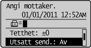 Hvis maskinminnet blir fullt mens du skanner et dokument:<Minnet er fullt.> vises i displayet, og du kan ikke benytte tidsinnstilt sending av dokumentet.