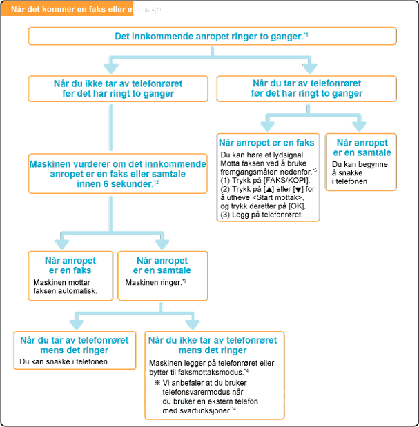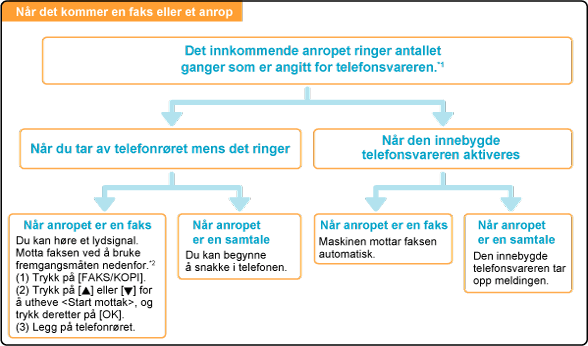 Når "Bytt til automottak" er stilt inn til <På>, starter maskinen automatisk mottak av en faks etter flere ring.