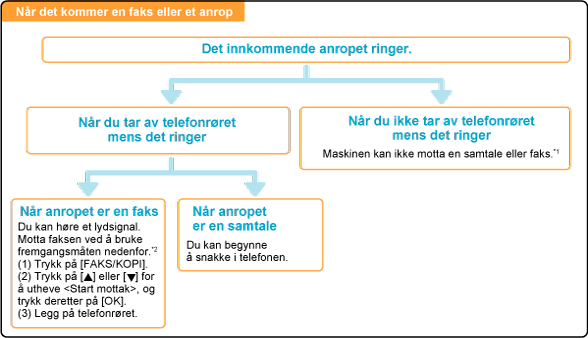 Det kan være at du vanligvis ikke kan motta en faks, avhengig av hvilke telefon som er tilkoblet.