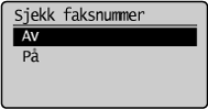 Skjermbildet for bekreftelse av faksnummer:Skjermen vises kun når en mottaker spesifiseres med talltastene.