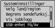 ] for å utheve <USB-enhet På/Av>, og trykk deretter på [OK].