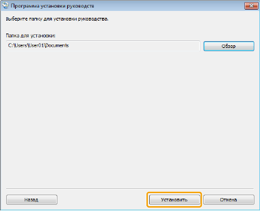 Выберите папку для установки руководства и затем щелкните [Установить].