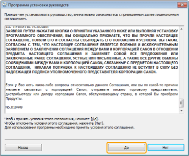 Прочитайте лицензионное соглашение и щелкните [Да].