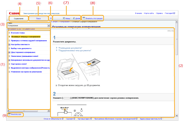 Нажмите, чтобы свернуть панель [Содержание] и [Поиск].